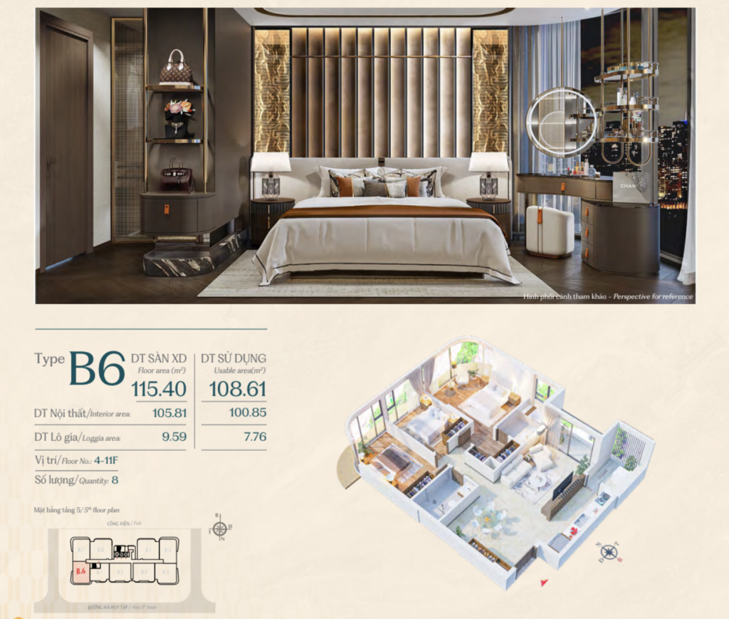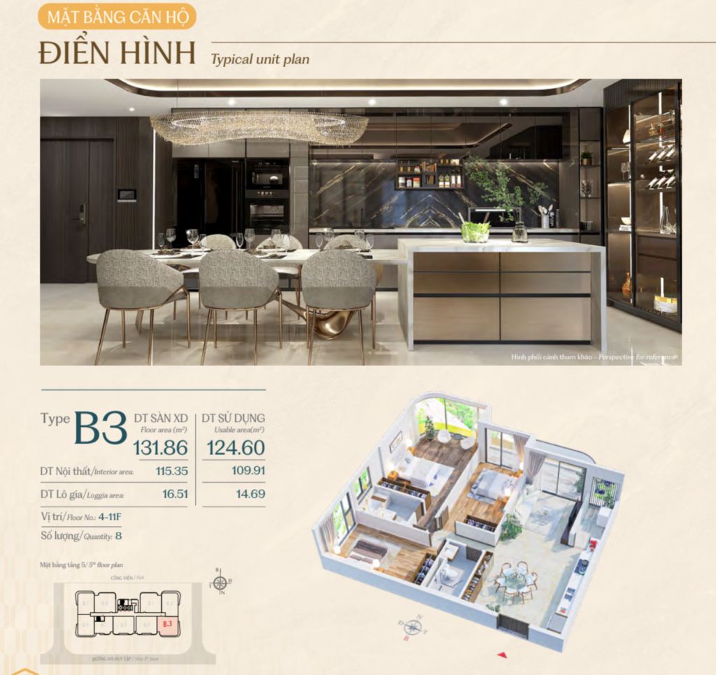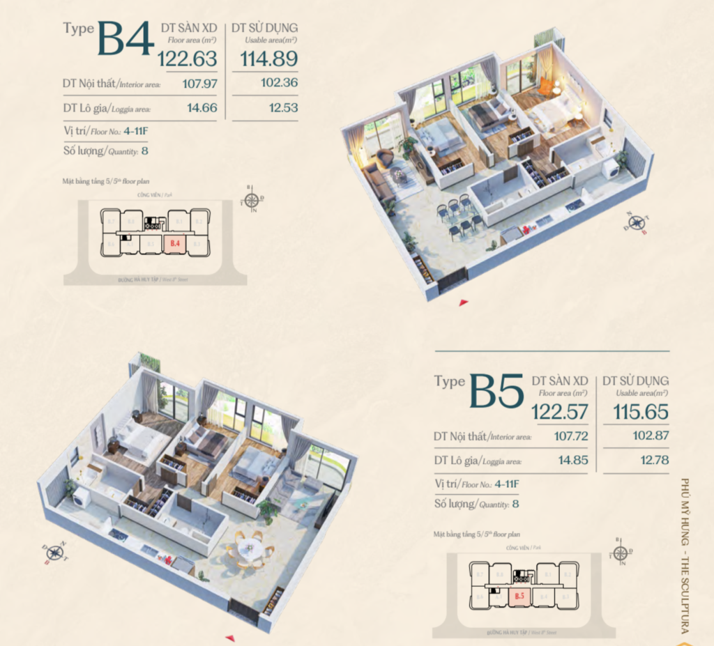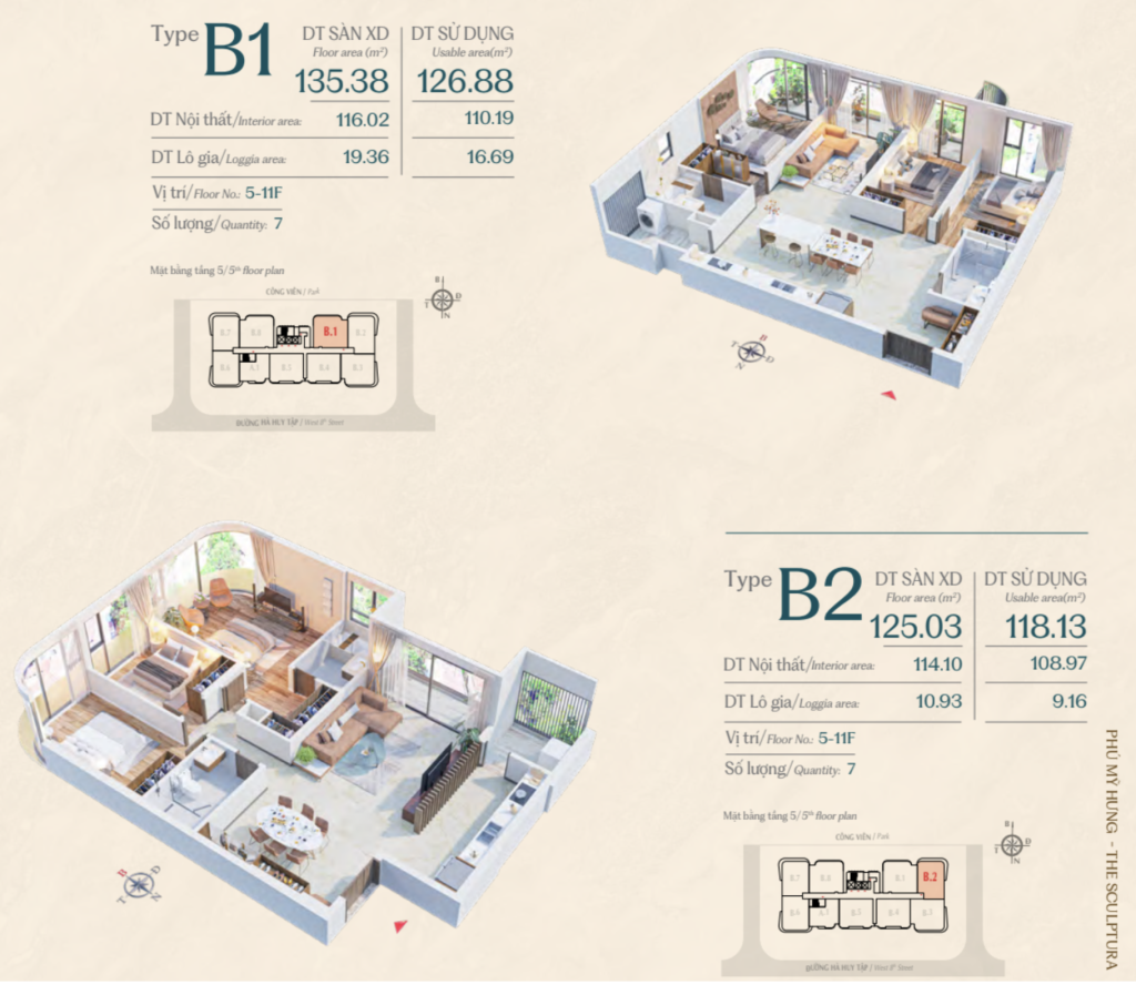 KIỂU CĂN HỘ 3 PHÒNG NGỦ PHÚ MỸ HƯNG THE SCULPTURA